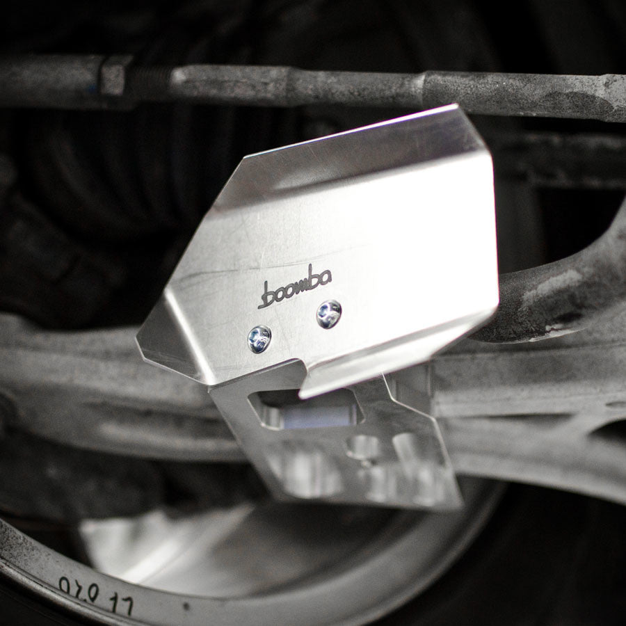 Sick and tired of experiencing brake fade and a mushy pedal? Boomba Racing has the solution for you! The Boomba Racing brake cooling deflector kit for the Subaru WRX helps to channel air towards your caliper and rotor when driving. The cooling deflector mounts securely to the A-arm using a hole that is already there for a completely reversible installation. Ground clearance is not compromised and there is no need to remove your fog lights or drill any holes. Removal of the rotor dust shield is highly recommended in aiding air flow to the brakes