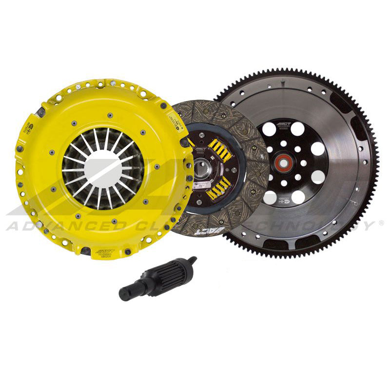 If you have a built block with a rotated turbo setup, then it may be time to upgrade to the ACT XT Performance Street Sprung Clutch Kit. This clutch holds up to 51% torque capacity over the factory clutch, so roughly around 510 ft/lbs of torque. This clutch features ACT's Xtreme Pressure Plate which use an exclusive diaphragm design which increas. . . Show More >