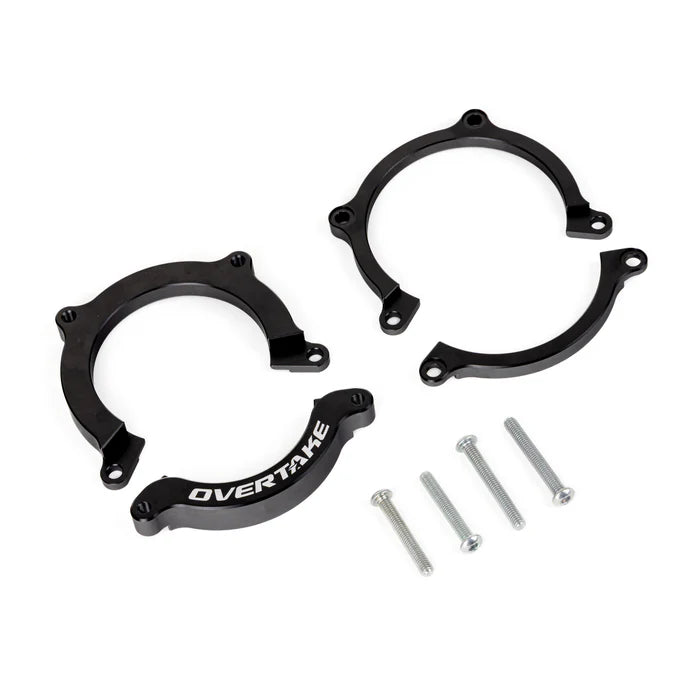The Details: Every time you get hard on the throttle, your driveshaft is fighting against soft factory rubber that was designed for comfort, not performance. That rubber allows the carrier bearing to shift and flex, which throws off driveshaft alignment and robs you of clean power delivery. The OVERTAKE Driveshaft Lockdown Kit fits directly over your existing OEM carrier and locks it firmly to the chassis, eliminating the deflection that causes wheel hop and drivetrain slop. Our 4-piece design fits entirely around the bearing, unlike the 2-piece competition, allowing for a complete, 360* lockdown. The result is a more planted, more predictable car that puts power down cleaner, whether you're launching at the drag strip or just merging onto the highway. Expect a minimal increase in NVH, but most drivers find the trade-off well worth the improved feel and response.