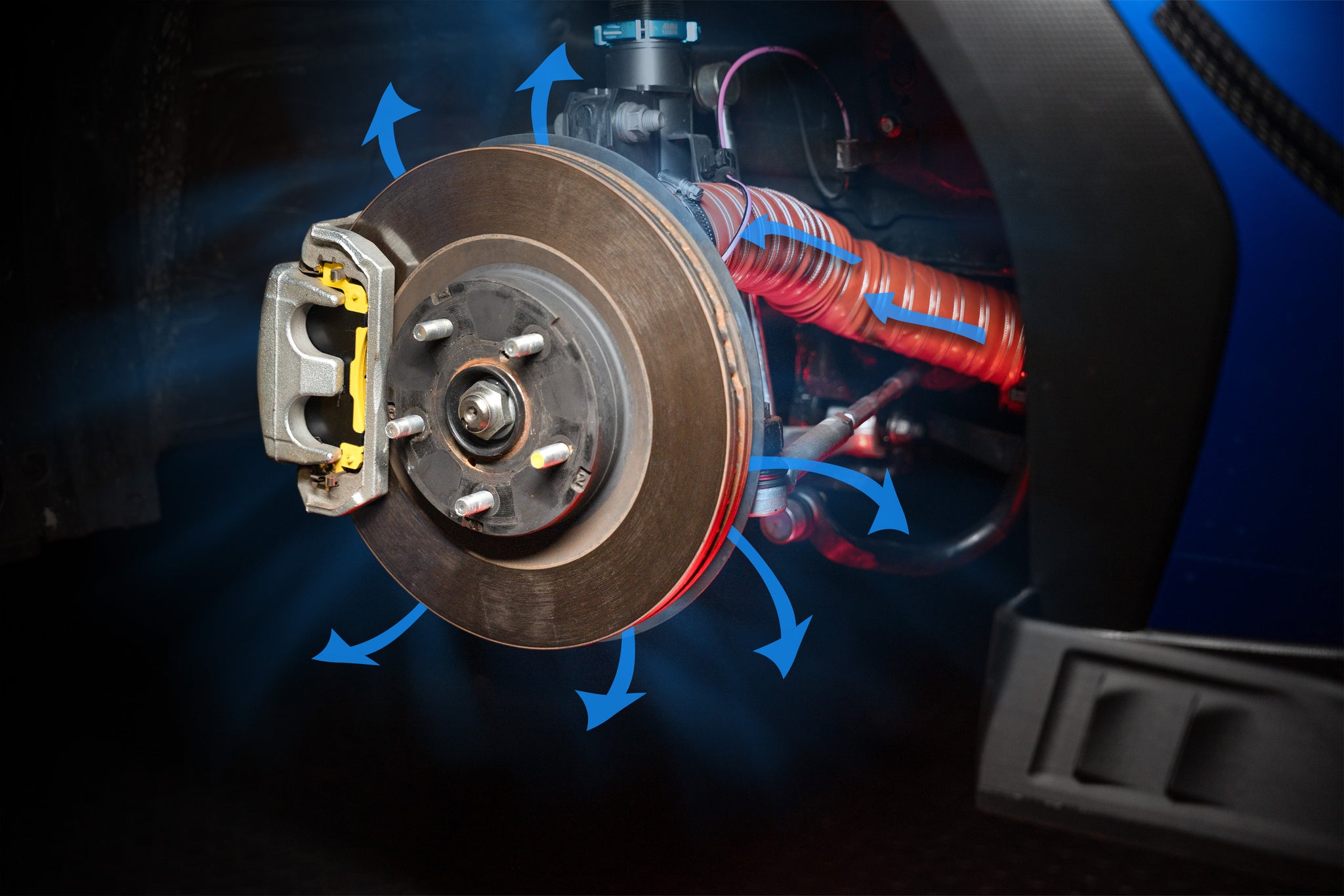 The Verus Engineering Brake Cooling Kit for your 2022+ WRX VB captures high pressure air hitting the front of the car and forces it directly to the center of the rotor, thus increasing the brake cooling capacity of your factory and/or aftermarket brake system.