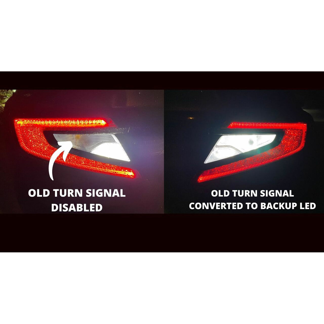 Additional Backup Lights. Also available with the kit, you can convert the old turn signal socket to an extra backup light. With double the number of backup lights, you will add much more visibility when reversing at night. Each kit is already configured to accomplish this; however, you will need to purchase new white LED bulbs. LEDs must be used, instead of standard bulbs, since you will be drawing power from the backup light circuit.