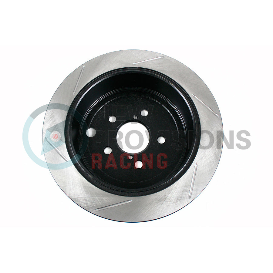 The Stoptech Slotted Brake Rotors are a great OEM replacement, and will improve the braking performance in your vehicle ffrom daily driving activities, to high-performance driving. The slots on the rotor create a sweeping motion to wipe the surface of the brake rotor clean from brake dust, to hot gasses generated from extreme braking which improves cooling, and provides more of a bite under braking.