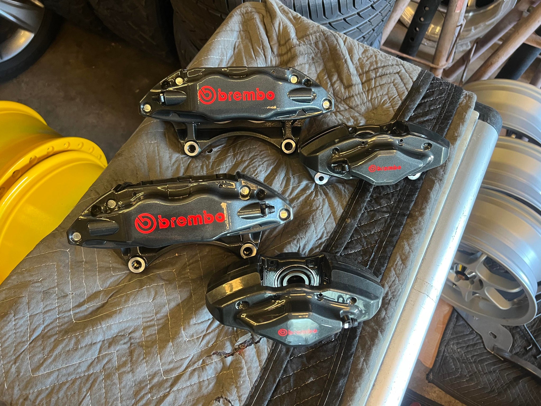 - Remanufactured calipers freshly powder-coated in your color choice - decals of your choice in your color choice - These are NOT Brembo calipers. These are sourced from DBA. ($75 added cost per pair of calipers to do powder coated logos)
