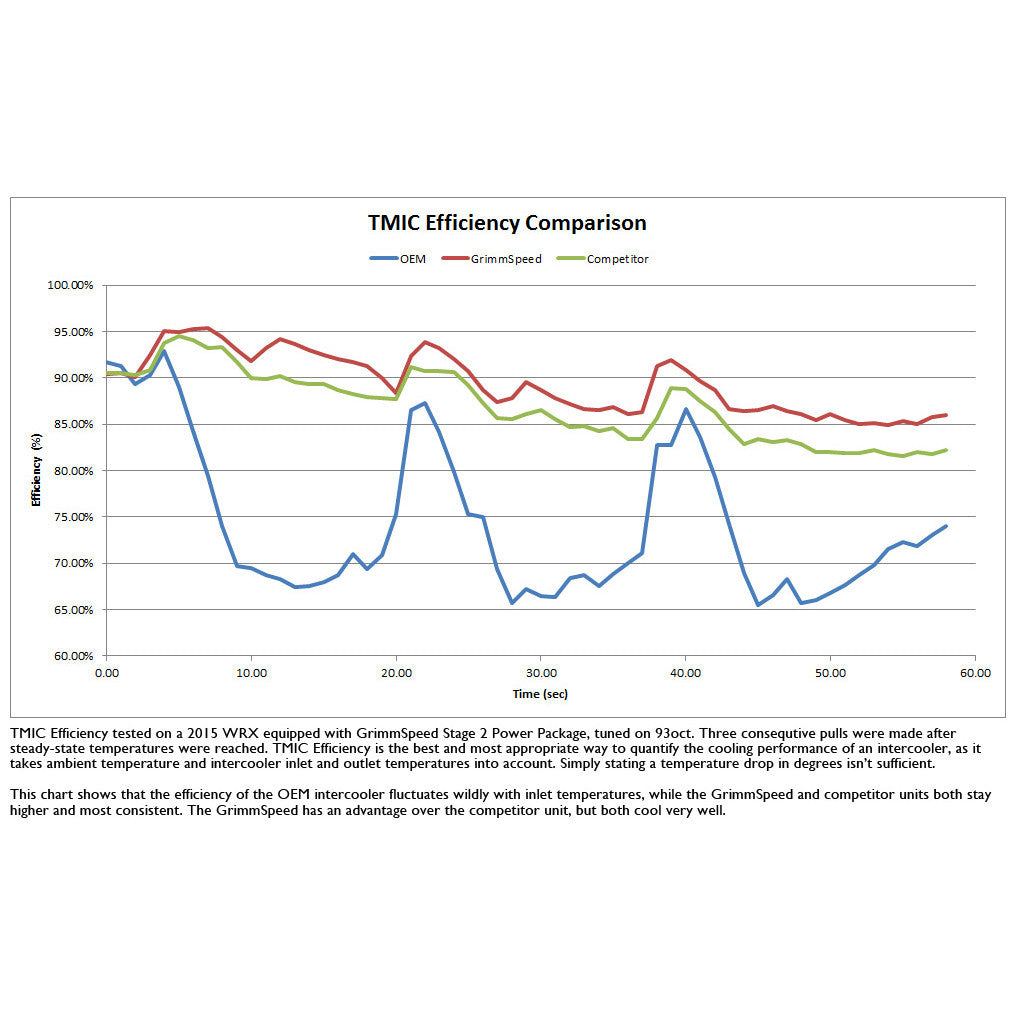 As we've already established, a GrimmSpeed top mount intercooler is an ideal upgrade for your STI or WRX. One of the reasons drivers prefers it is because it significantly boosts performance. The GrimmSpeed TMIC prevents the pressure drop that comes with those huge high-flow intercoolers. Doing so lets you maintain or increase throttle response. And the good thing is that your STI or WRX is already optimized for a TMIC. That big hood scoop allows air to flow through the intercooler and not around it, making it very efficient.